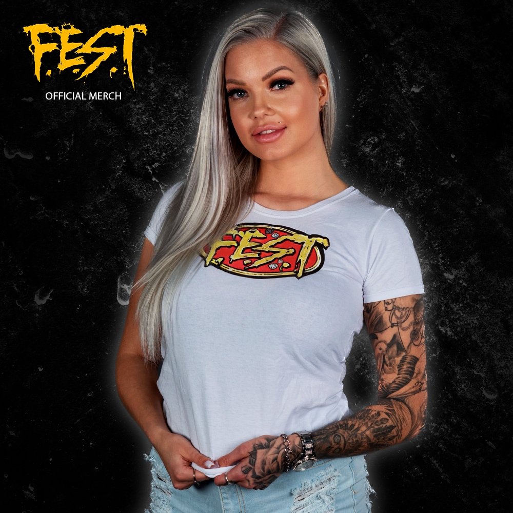 F.E.S.T "White logo" Girlie PrisNOK249,00 inkl. mva. Les mer Lady-fit trøye med den populære F.E.S.T logoen. kjøpte produkter kan ikke returneres eller byttes da de lages "on demand"